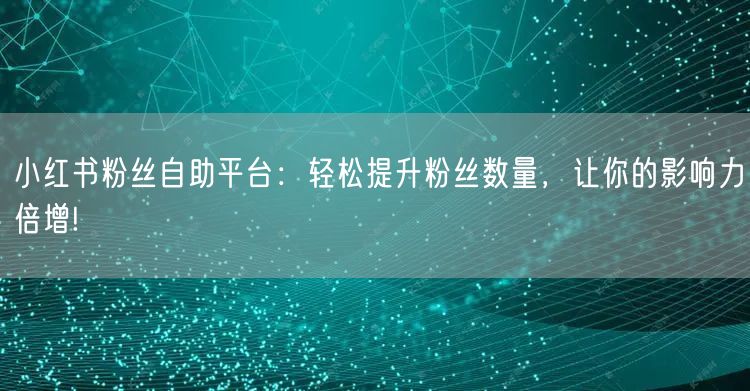 解锁小红书粉丝自助平台,轻松提升粉丝数量,让你的影响力倍增!无论你是个人用户还是品牌商家,都可以通过该平台快速扩大影响力,提升个人或品牌的曝光度。赶快行动起来,加入小红书粉丝自助平台,开启你的社交媒体营销之旅吧!