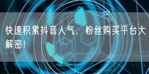 抖音已经成为现代人生活中不可或缺的一部分,越来越多的人希望通过抖音积累人气,扩大影响力。但是,如何快速增加抖音粉丝数量,提升人气呢?今天,我们就来揭秘抖音粉丝购买平台的秘密,带你轻松积累人气!
