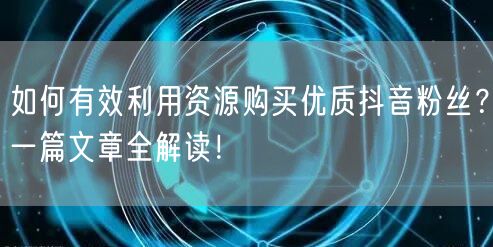 购买优质抖音粉丝是提升账号影响力的重要途径之一。通过关键词策略、精准定位、资源利用、合理投入和SEO优化等方式,能够有效利用资源,快速提升抖音账号的影响力。希望本文的解读能够帮助您更好地进行抖音粉丝购买,实现账号的快速生长和发展。