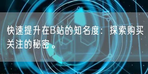 在如今的社交媒体时代,拥有一个高知名度的账号意味着拥有更多影响力。对于想要在B站快速提升知名度的创作者来说,探索购买关注的秘密或许是一种有效途径。本文将带你深入了解购买关注如何助力你在B站迅速扩大影响力。