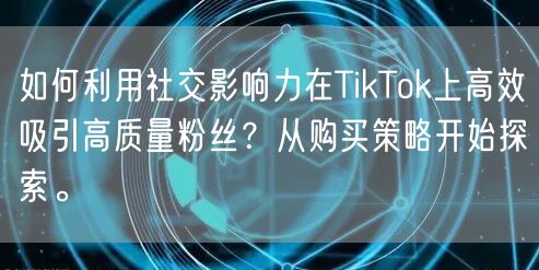 随着TikTok平台的快速发展,越来越多的人开始关注这个社交媒体平台上的影响力。对于希望在TikTok上建立个人品牌、推广产品或服务的人来说,吸引高质量粉丝是非常重要的。本文将介绍如何利用社交影响力在TikTok上高效吸引高质量粉丝,特别是从购买策略的角度进行深入探讨。