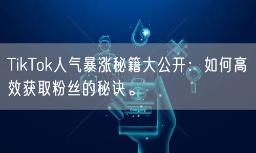 要想在TikTok上快速获取粉丝、提升人气,需要综合运用多种方法。通过打造独特的个人形象、制作优质内容、积极互动、利用社交媒体推广、定期更新以及运用付费推广等方式,你可以在TikTok上实现人气暴涨,成为众人瞩目的焦点。希望本文的秘籍能够帮助你在TikTok上取得更好的成绩。