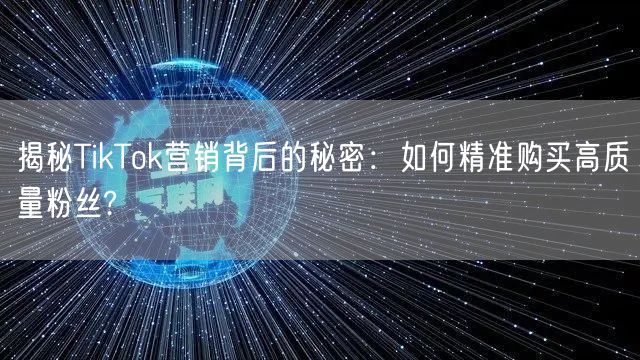 随着TikTok在全球范围内的普及,越来越多的企业和个人开始关注这个社交平台上的营销。其中一个热门话题是如何精准购买高质量粉丝,以增加自己的关注度和影响力。然而,这个话题背后隐藏着许多秘密和技巧。本文将揭示TikTok营销背后的秘密,帮助你了解如何精准购买高质量粉丝。
