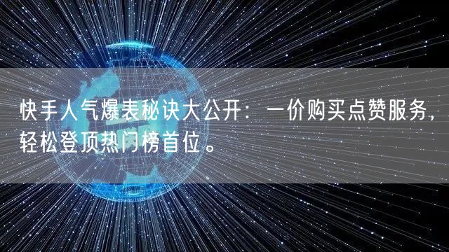 在快手的热潮中,如何让自己的作品在众多内容中脱颖而出,成为热门榜首位,吸引更多关注和粉丝,是每个快手用户都关注的问题。今天,我们将揭秘一个让人气爆表的秘诀——购买点赞服务。