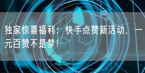 快来参与快手点赞新活动,一元百赞不是梦!让我们一起见证你的才华和魅力,共同创造更多社交精彩瞬间!